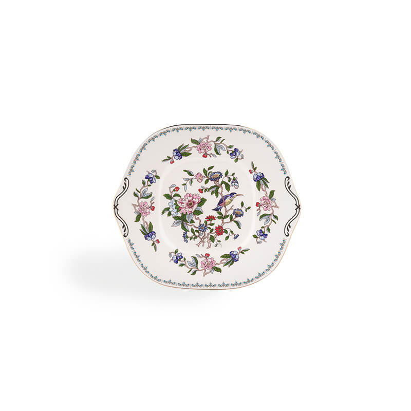 The Aynsley Pembroke Cake Plate Square brings timeless elegance to afternoon tea or special occasions. Inspired by Asian artistry and first introduced in 1895, the celebrated Pembroke pattern features delicate, lifelike birds and oriental foliage. Crafted in fine bone china, the design evokes the charm of a serene hand-painted landscape, combining heritage craftsmanship with enduring beauty.