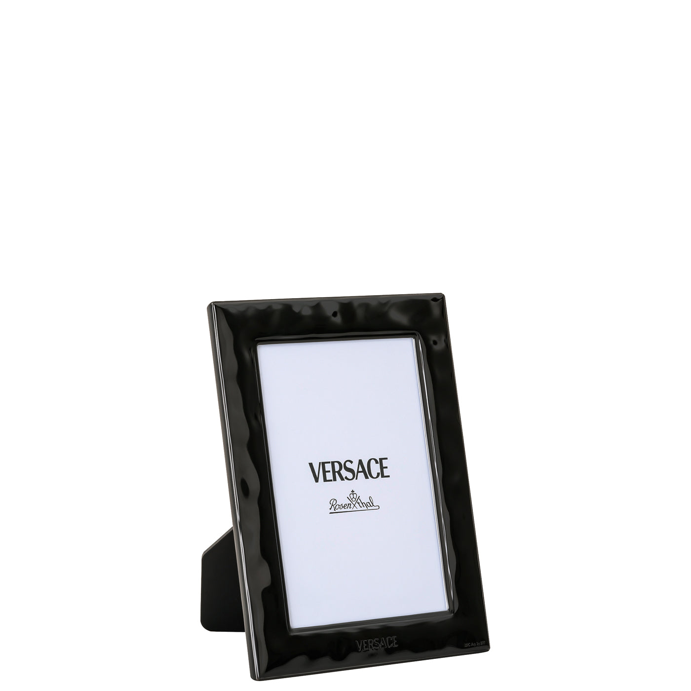 The Versace VHF13 Black Picture Frame is a compact yet sophisticated design from the Rosenthal meets Versace collection. Introduced in 2025, it is designed for 10 x 15 cm (4 x 6 inches) photographs. The frame features a dramatic black lacquer finish with a hammered-effect texture, complemented by discreet Versace branding at the base.