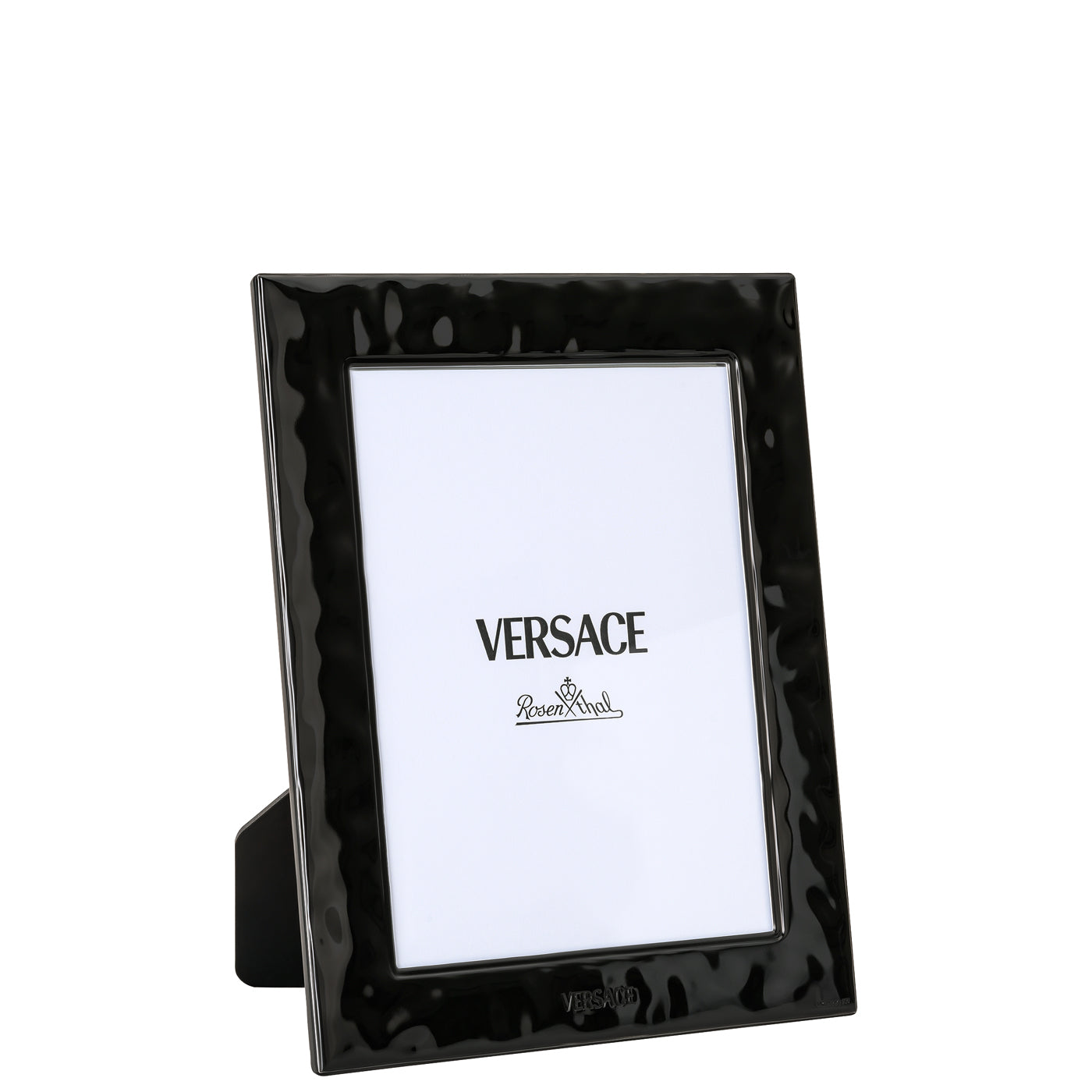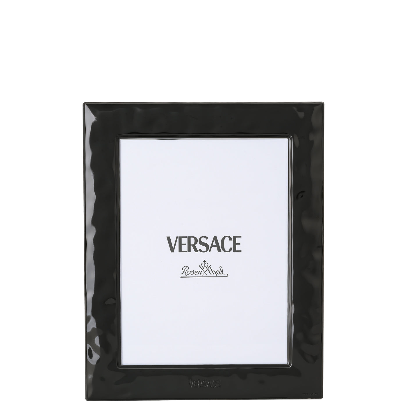 The Versace VHF13 Black Picture Frame is a refined mid-size design from the Rosenthal meets Versace collaboration. Introduced in 2025, it is crafted for 15 x 20 cm (6 x 8 inches) photographs and finished in a sleek black lacquer with a distinctive hammered-effect texture. A subtle Versace logo at the base completes the frame with understated luxury.