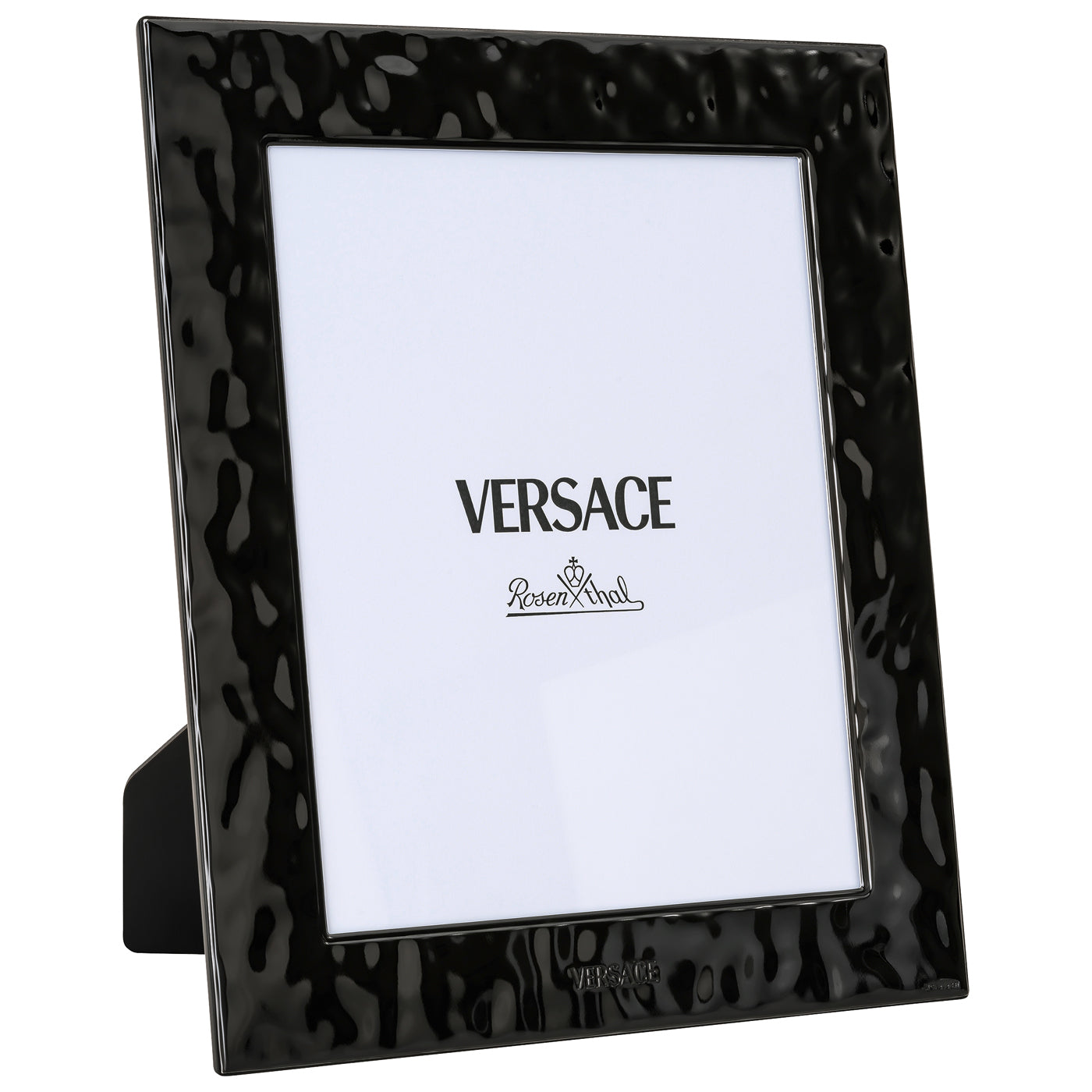 The Versace VHF13 Black Picture Frame is a sleek and contemporary design from the prestigious Rosenthal meets Versace collaboration. Introduced in 2025, it is crafted for 20 x 25 cm (8 x 10 inches) photographs and finished in a bold black lacquer with a refined hammered-effect texture, creating a dramatic play of light and shadow. Subtle Versace branding at the base adds a discreet but unmistakable signature of luxury. Balancing modern minimalism with artisanal detailing, this frame is ideal for showcasing cherished photographs while doubling as a stylish decorative accent in both modern and classic interiors.