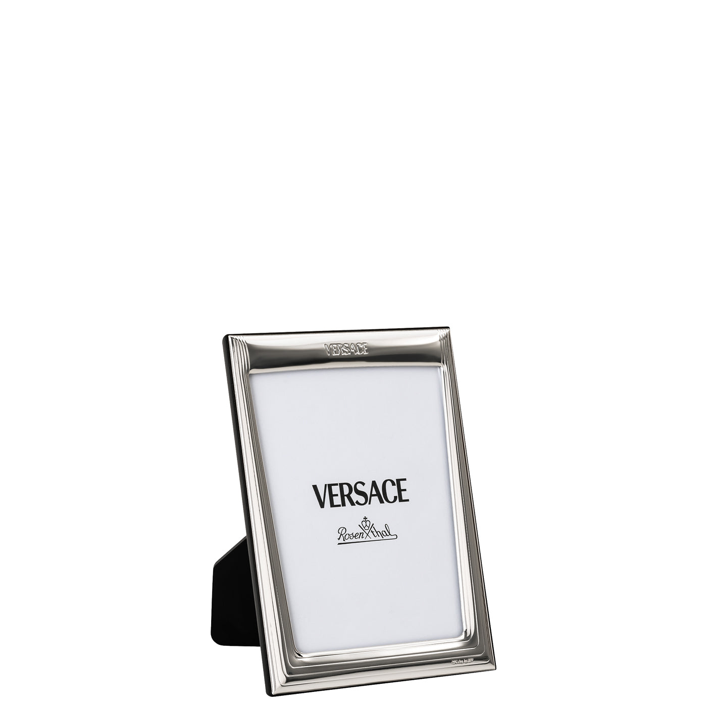 The Versace VHF14 Silver Picture Frame is a compact yet elegant accessory from the Rosenthal meets Versace line. Designed for 10 x 15 cm (4 x 6 inches) photographs, this frame features a bilaminated silver surface with matte and linear detailing, topped with the iconic Versace logo.