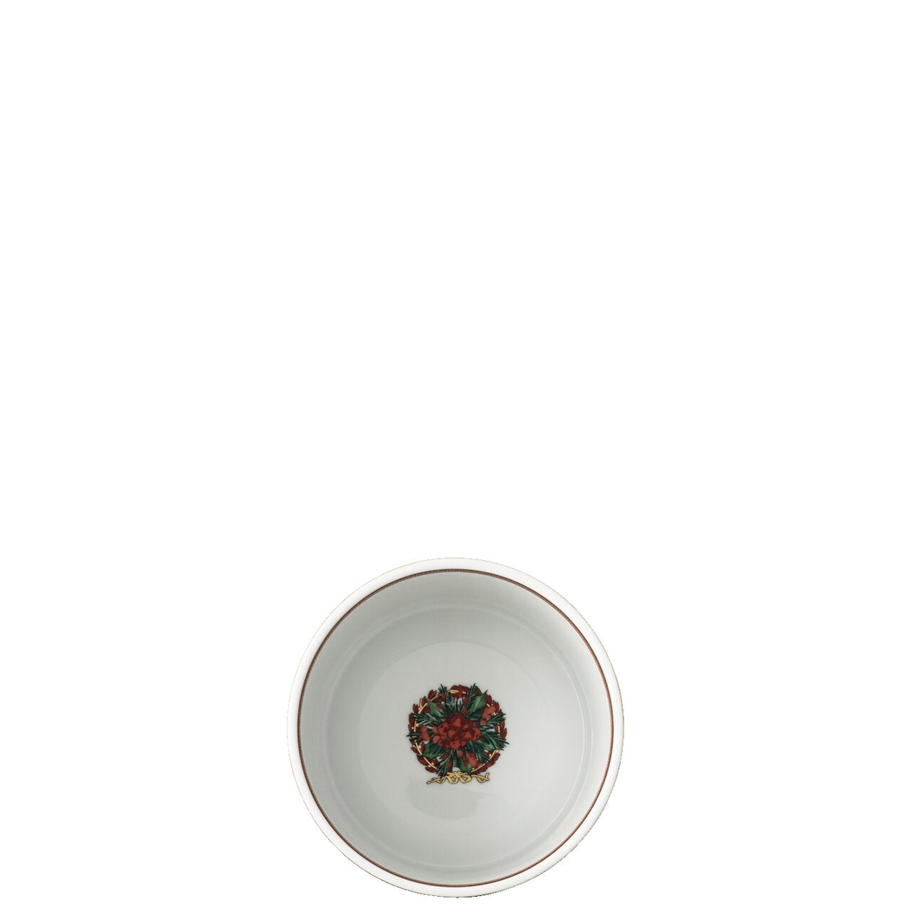 The I Love Baroque Holiday collection continues Versace’s tradition of creating exquisite festive designs, capturing the splendour of the Baroque style with a joyous holiday twist. For Christmas 2025, the beloved I Love Baroque pattern is reimagined with enchanting seasonal motifs—mistletoe vines, holly with red berries, and lush green foliage—set against a crisp white backdrop. Rich red and green hues are complemented by opulent gold accents, from gilded cup handles to delicately adorned bells, evoking the glamour of a Versace holiday.