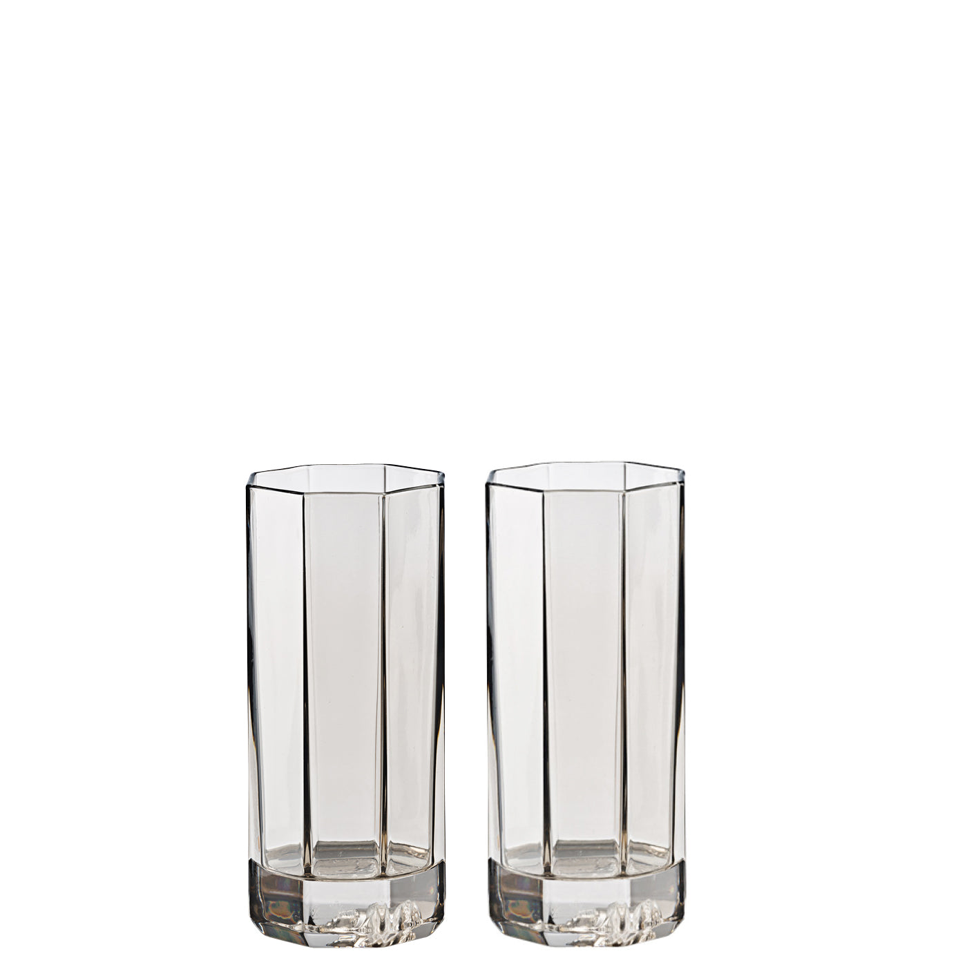 The Versace Medusa Lumière Haze Longdrink Goblets are a sophisticated addition to the Rosenthal meets Versace collaboration. Introduced in 2016, this set of two is crafted from fine fumed grey crystal, giving a smoky, modern edge that contrasts beautifully with the iconic three-dimensional Medusa emblem at the stem.